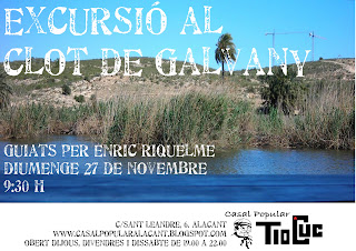 Ahir vam fer un bonic recorregut pel paratge natural del "Clot de Galvany" d’Elx guiats pel company Enric Riquelme. L’excursió va durar gairebé tot el matí i vam gaudir d’un dia envoltats de natura i respirant aire pur.